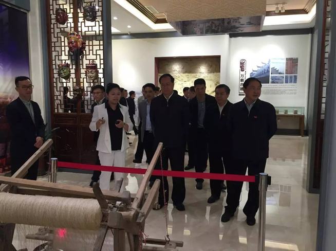 毛偉明首先視察了萬載古城文化展示中心,領(lǐng)略了當(dāng)?shù)厣詈竦拿袼?、非遺文化,并認(rèn)真聽取了集團(tuán)萬載瑞辰文化旅游發(fā)展有限公司總經(jīng)理張藜對古城項(xiàng)目的詳細(xì)介紹。
